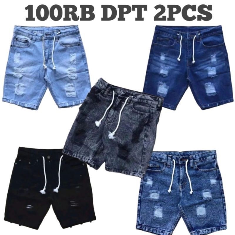 PROMO SUPER MURAH 100 RIBU DAPAT 2 PCS CELANA JEANS SOBEK PENDEK PRIA PREMIUM