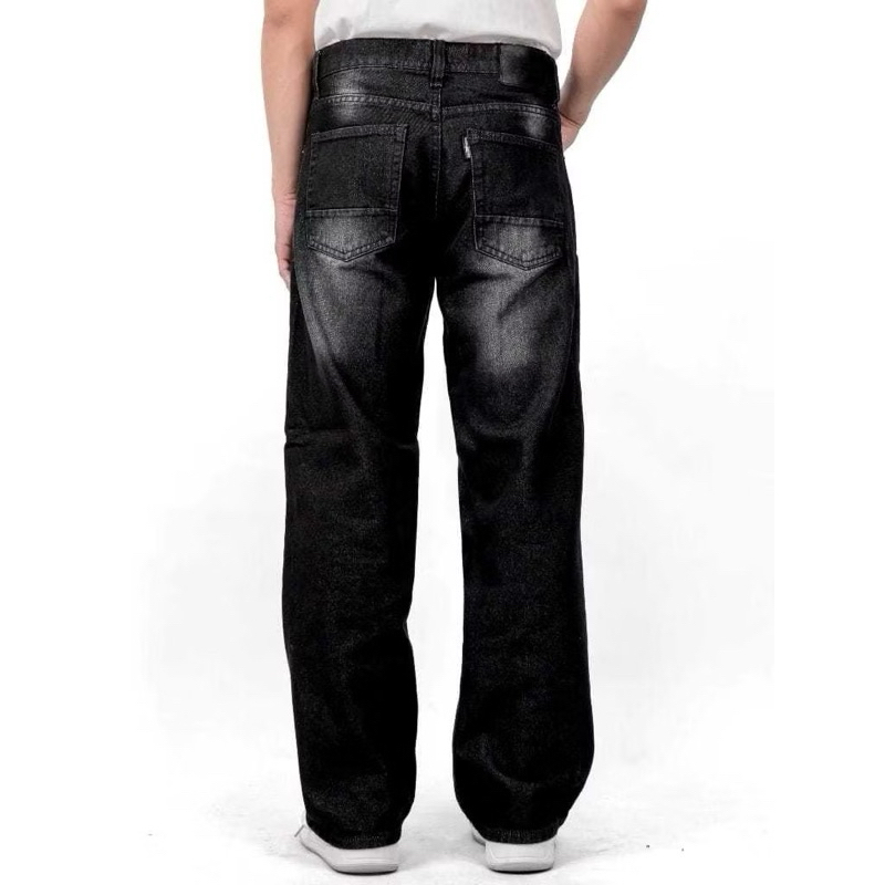 Celana Jeans Panjang Baggy / Pria Loose Fit Whisker Retro / Baggy Jeans Pria Gombrong