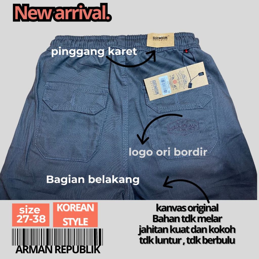 ARM Celana Pria Panjang Skena Baggy Pants Bahan Canvas Tidak Melar Korean Style Gombrong Longgar