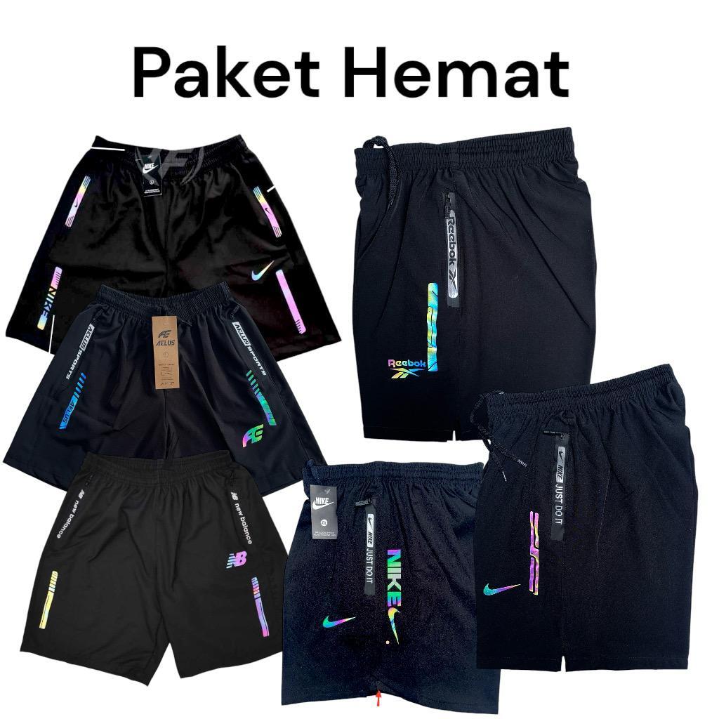 Paket 3 Pcs Celana Pendek Parasut Micro Elastis Saku Resleting WaterProff