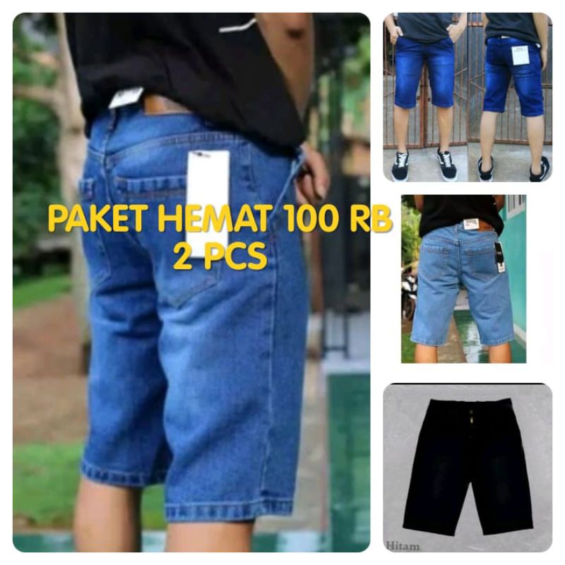 Paket hemat Celana pendek 100 ribu 2 pcs Celana pendek pria jeans polos Fashion Distro Nyaman tebal