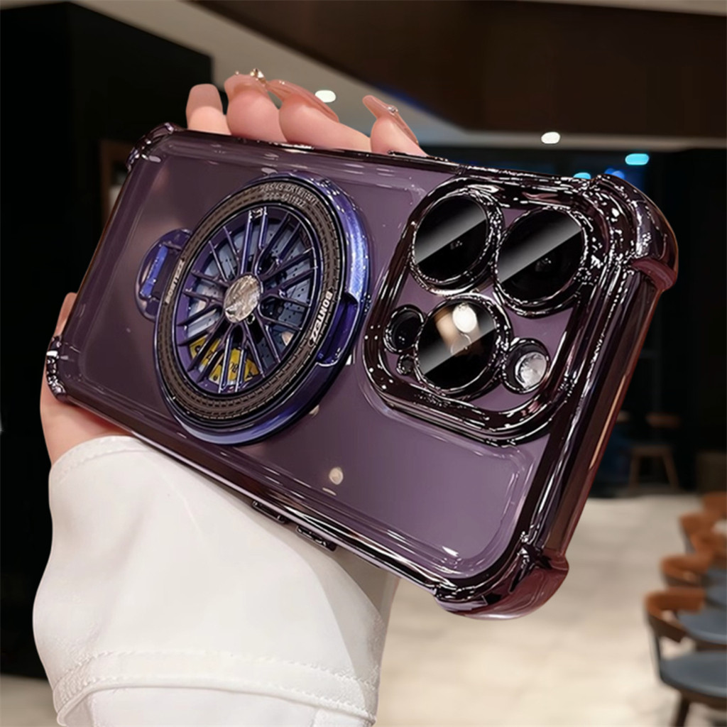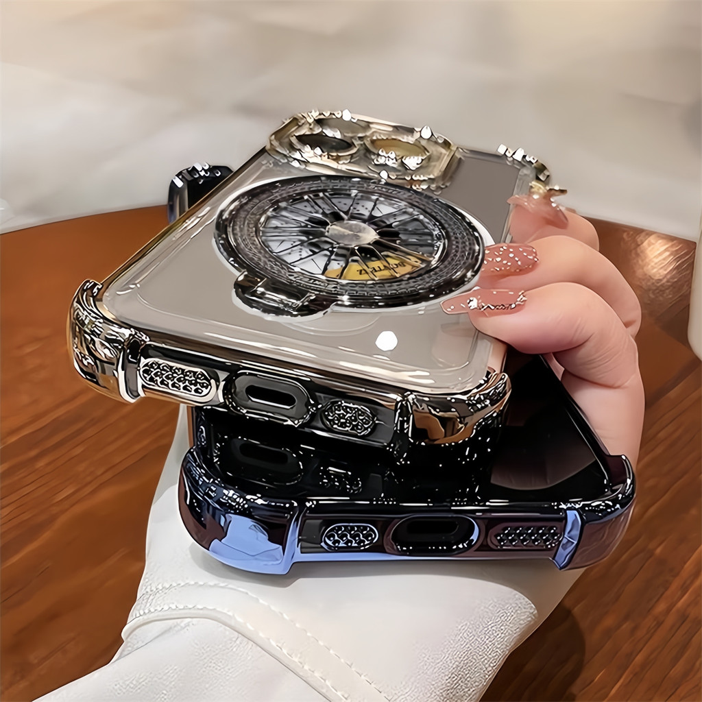 [Mall] PREMIUM TRANSPARENT HARD CASE PREMIUM MAGNETIC ROTATING GYROSCOPIC BRACKET PHONS CASE FOR IPHONE 11 12 13 14 15 PRO MAX PLATING BENING BUMPER CASE COVER MAGSAFE