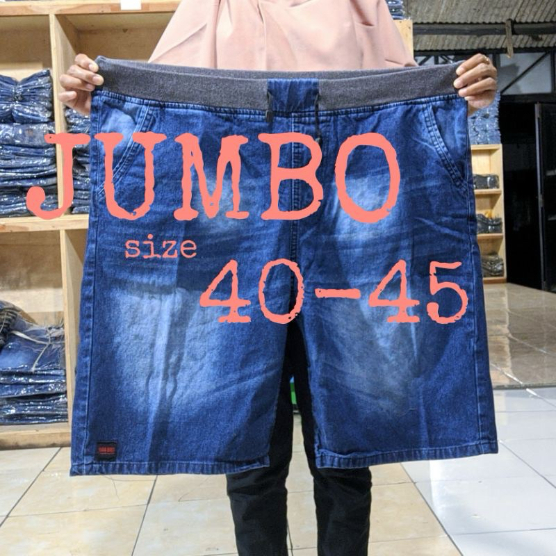 Celana pendek jeans jumbo pria all size maksimal BB 90 kg