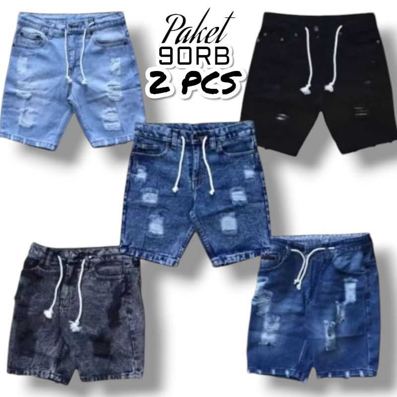 Paket Celana Sobek 100 Ribu 2 pcs / Celana Jeans Pria Pendek Sobek Fashion Distro Lokal Style Sobek Premium