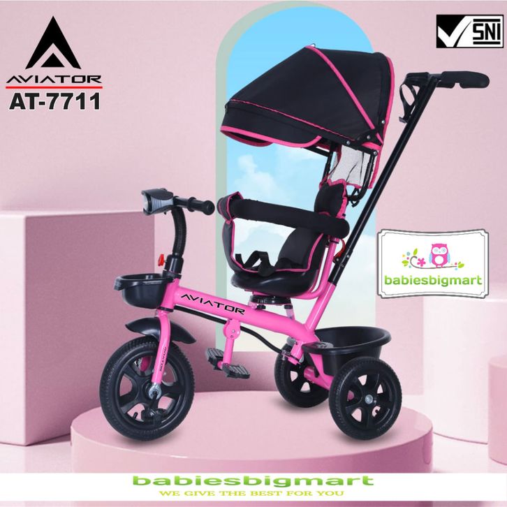 Sepeda Anak Roda 3 Tiga AVIATOR Tricycle AT 7711 Lampu Musik Kursi putar