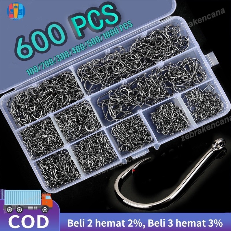 DISKON 1000 Pcs Kail Pancing Aneka Ukuran Bahan Baja Karbon Dengan Tali Pengait/500/600/1000pcs Fishing Hook Set High-Ca