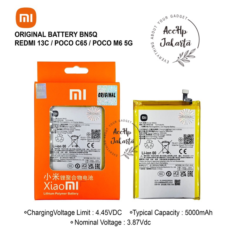 [Mall] BATERAI BATRE REDMI 13C / POCO C65 / POCO M6 5G BN 5Q BN5Q BATRAI ORIGINAL 100 PERSEN DISTRIBUTOR