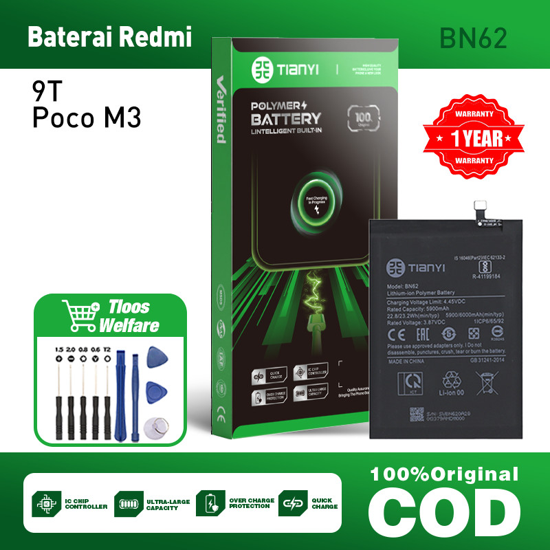 [Mall] BATERAI REDMI 9T BATRE FOR POCO M3 BATERE BN62 BATRAI ORIGINAL 100 PERSEN GARANSI 12 BULAN HP BATREI BATTERY BATERAI