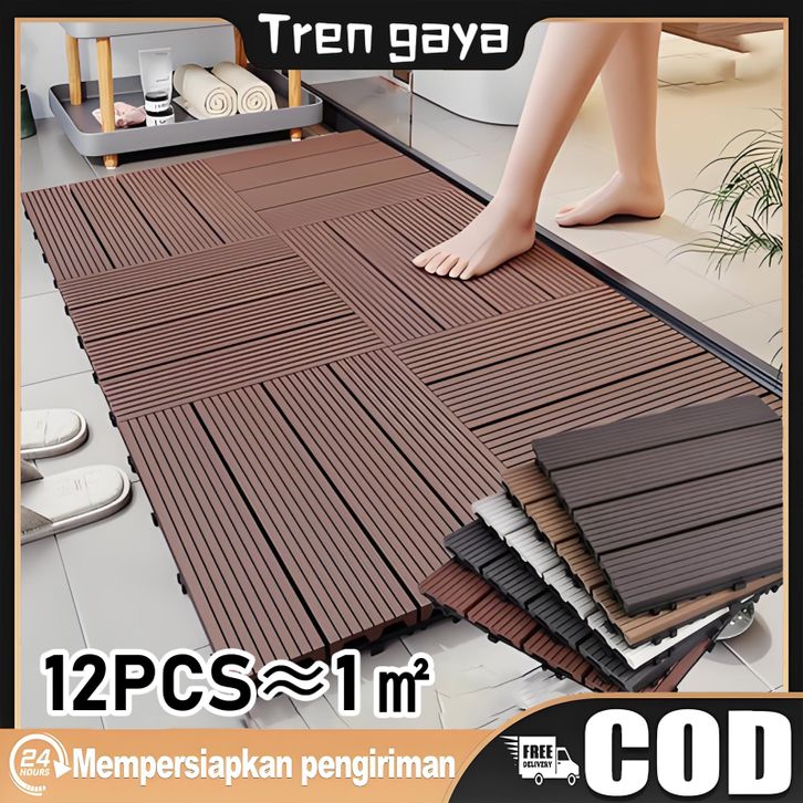 Decking Tile 30x30cm - Lantai Kayu Outdoor Tahan Air & Anti Lumut - Motif Kayu Jati