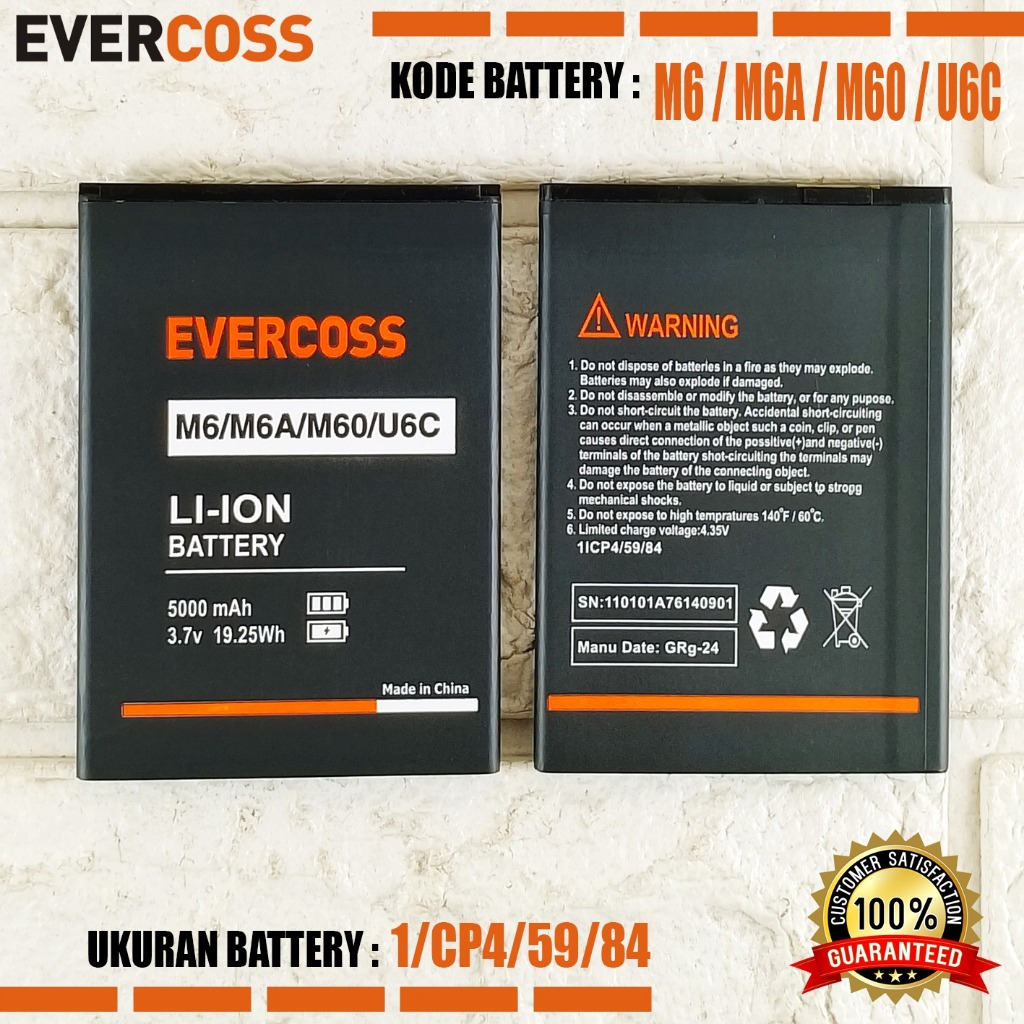 [Mall] BATERAI BATTERY BATERE DOUBLE POWER EVERCOSS M60 M6A M6 MAH 5800
