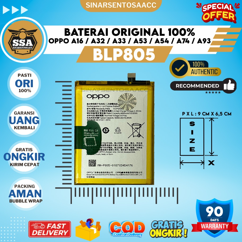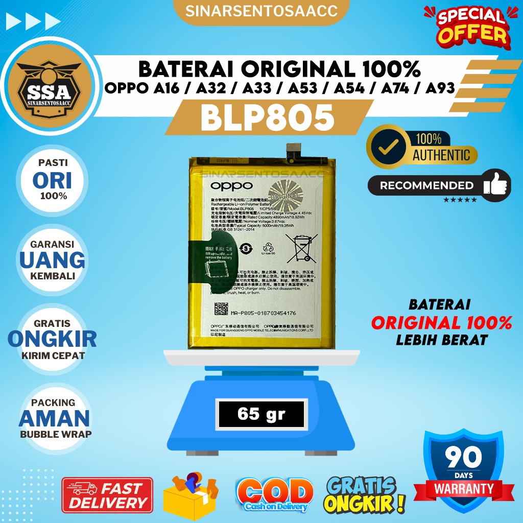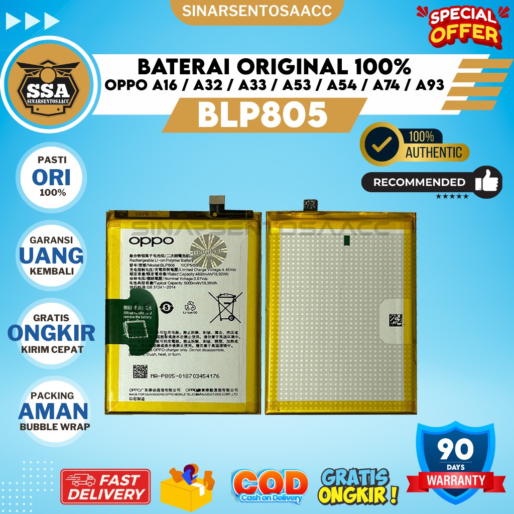 [Mall] BATERAI ORIGINAL 100 PERSEN 0PP00Q A16 A32 A33 A53 A53S A53S 5G A54 A54S A54 5G A74 5G A93 5G A93S 5G 2020 2021 BLP805 BLP-805 BLP 805 BATTERY BATRAI BATU BATRE BATREI HP ORI GARANSI