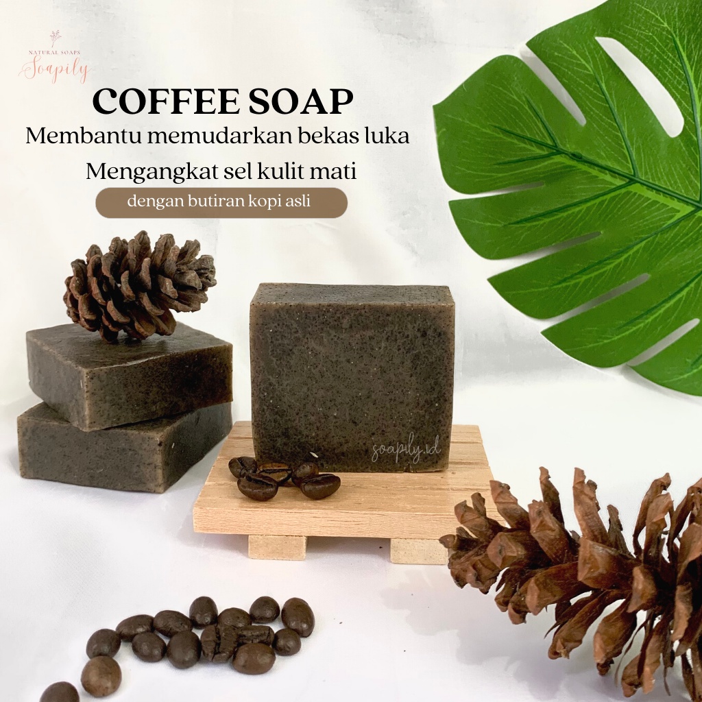 Soapily Sabun Kopi Alami | Coffee Scrub Bekas Luka Jerawat Tubuh Selulit Kapalan Kulit Kusam Lipatan Hitam | Natural Her
