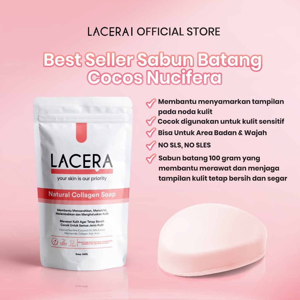 Lacera Bar Soap Brightening Collagen 100G I Sabun Mandi Batang Wangi Tahan Lama 24 Jam I Sabun Mencerahkan 10X Lebih Cep