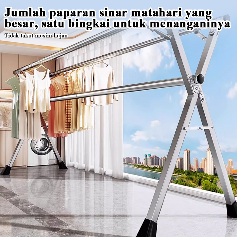 304 Jemuran Baju Lipat Jemuran Baju Stainless Steel 160-240cm Jemuran Pakaian Lipat Basah Tahan Karat Jemuran Hanger Por
