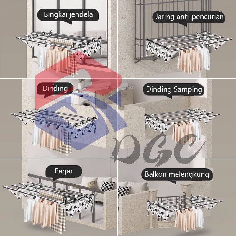 DGC Jemuran Lipat Dinding Jemuran Dinding Jemuran Baju Stainless Steel Jemuran Baju Pakaian Dinding