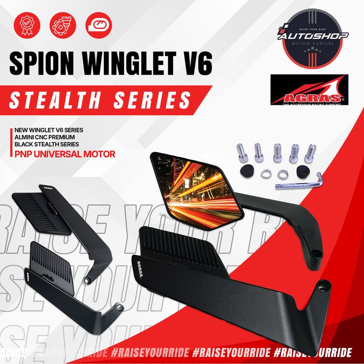 Spion Motor Kaca Spion Spion WINGLET V6 Black Stealth Series Invisible Mirror PNP Drat 14 12 FULL CNC PREMIUM