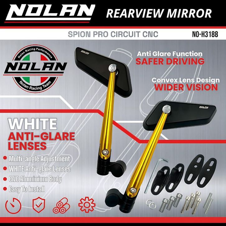 Spion Motor Kaca Spion Spion NOLAN Pro-Circuit White Glass/Kaca Putih Tangkai Warna