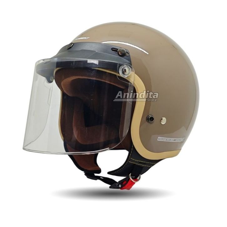 HELM NYA AJA, Kaca Cembung Bening, Kaca Datar Bening, Kaca Datar Smoke, TnpKaca / pakai PET, kaca Cembung Smoke