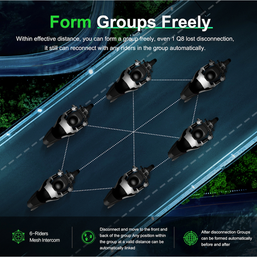 Ejeas Q8 Mesh Intercom Music Sharing Bluetooth Radio Fm Helm Alt Ms8 Q7 V6 Pro