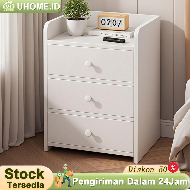 Meja Nakas Minimalis Dengan Kunci Bed Side Table Laci Serbaguna Meja Samping Kamar Tidur Kayu Modern Multifungsi