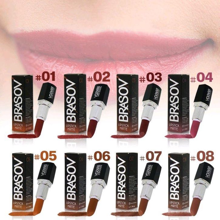 Lipstik Matte Brasov Shade 01 - 08 Pigmented Perona Bibir - Kering, Pewarna, Waterproof, Glaze, Berry, Gloss, Kosmetik,
