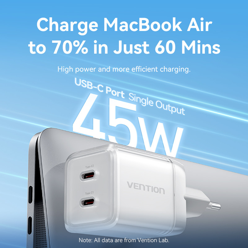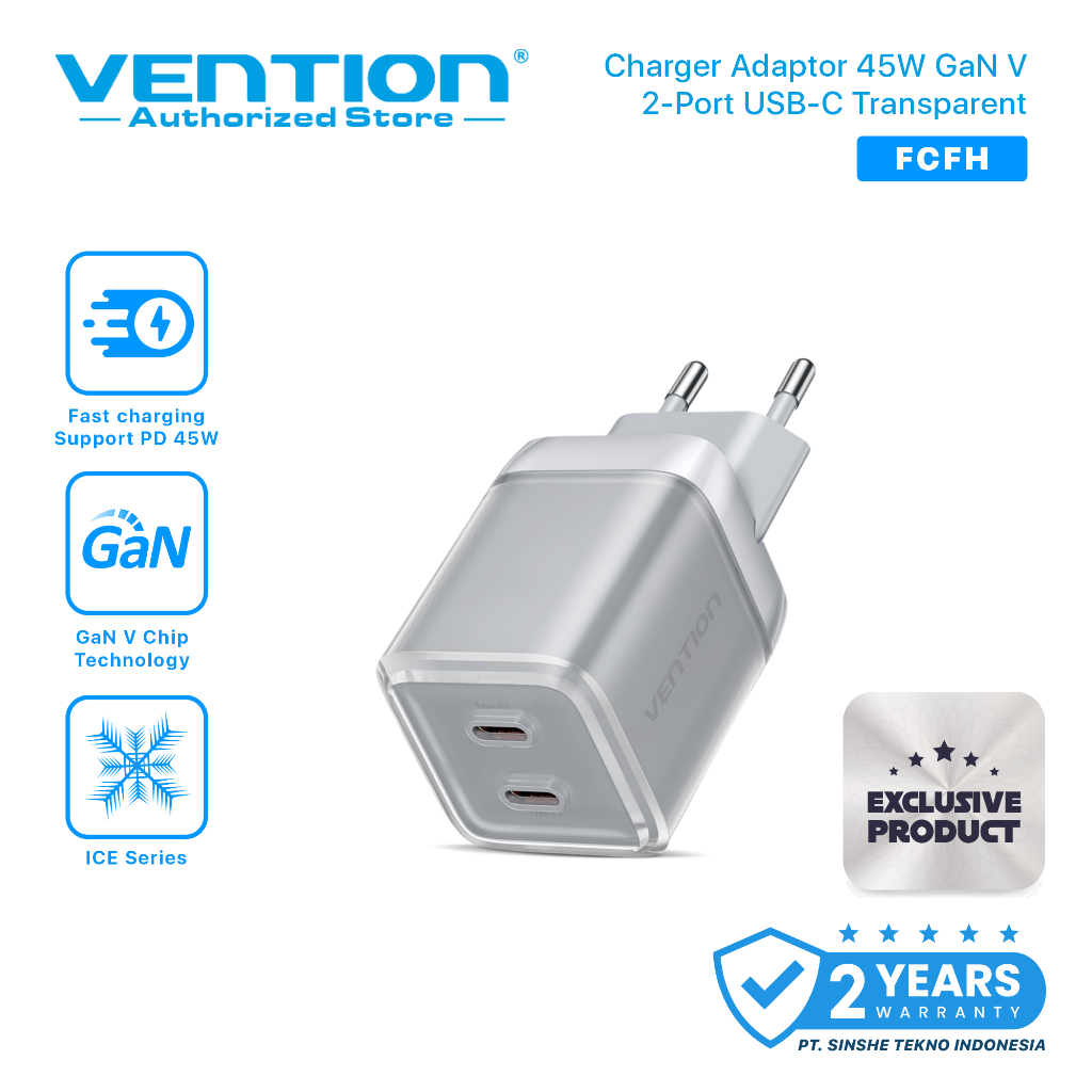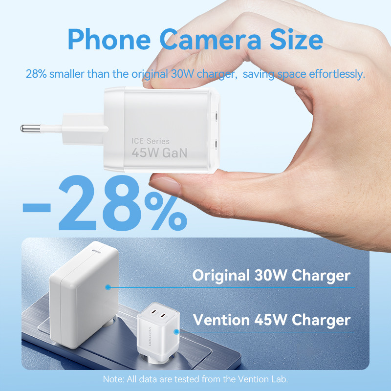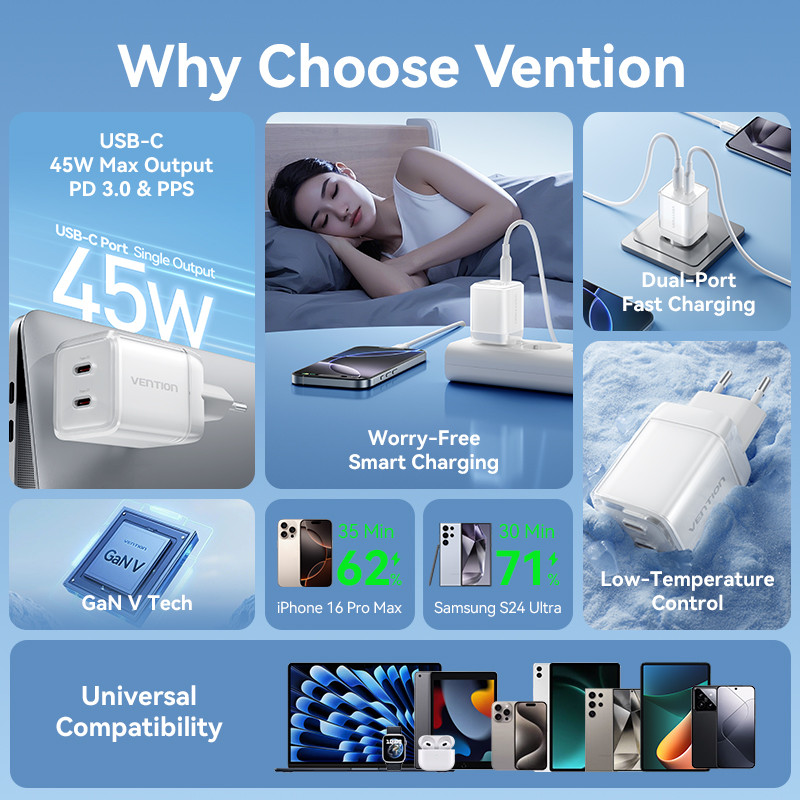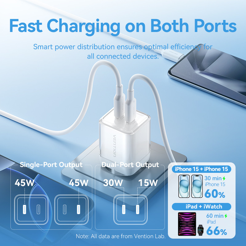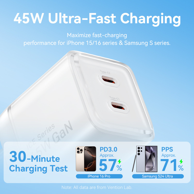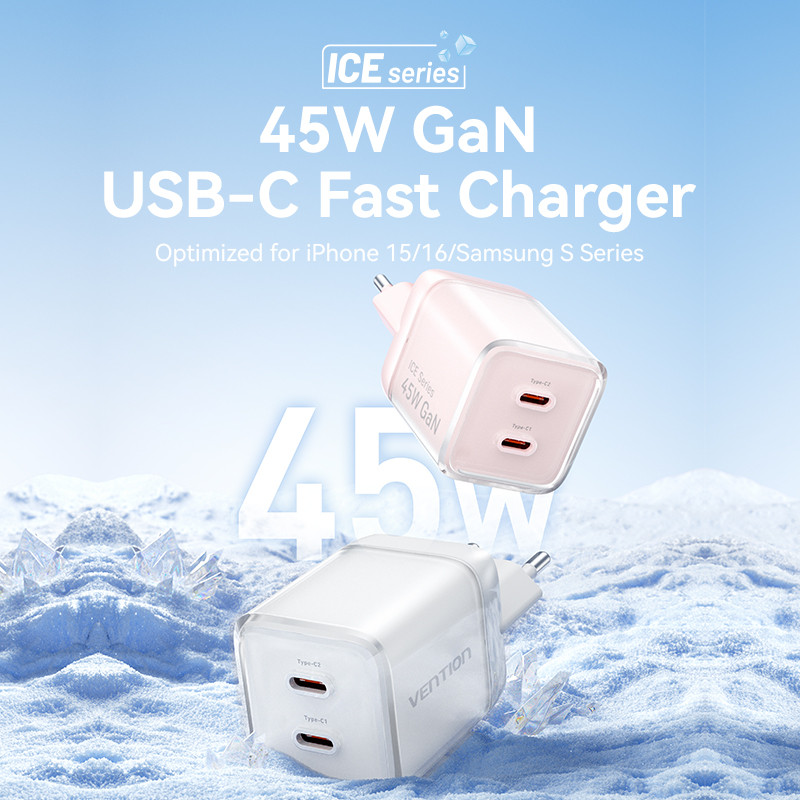 [Mall] VENTION CHARGER GAN 45W USB TYPE C FAST CHARGING ADAPTOR IPHONE 15 16 SAMSUNG ANDROID PD QC DUAL PORT ICE SERIES