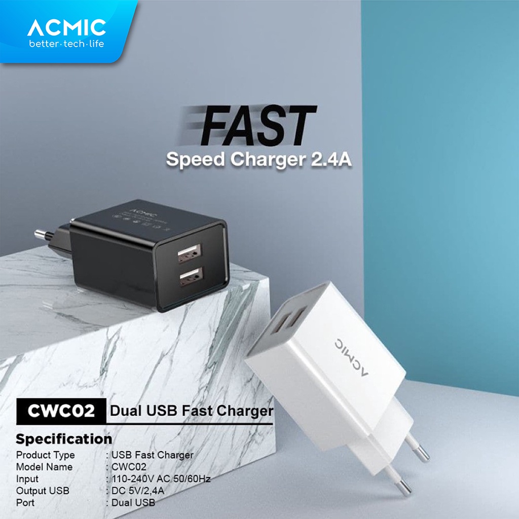 [Mall] ACMIC CWC02 DUAL USB 12W KEPALA CHARGER FAST CHARGING ADAPTOR