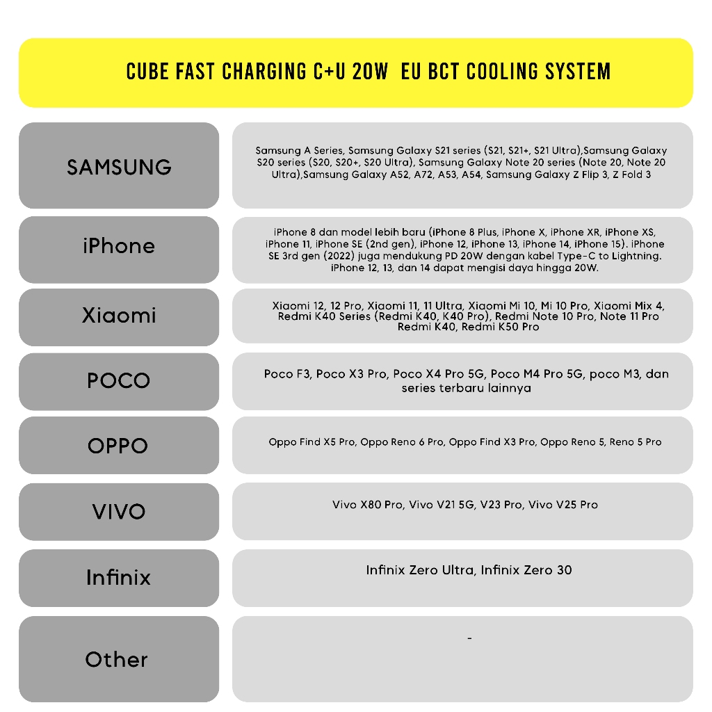 [Mall] BASEUS CHARGER MINI CUBE FAST CHARGING C+U 20W EU BCT COOLING SYSTEM