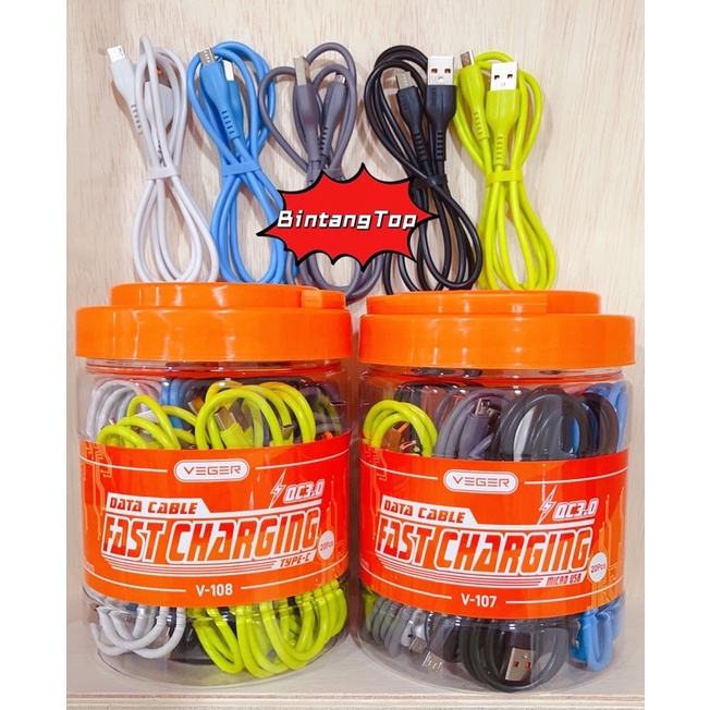 [Mall] KABEL DATA VEGER V-107 MICRO USB QC3.0 FAST QUICK CHARGING 1METER ( 1 TOPLES ISI 20 )