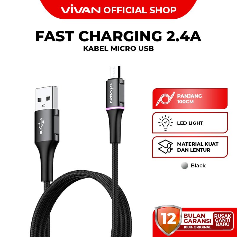 [Mall] VIVAN KABEL DATA MICRO USB/TYPE-C/LIGHTNING 2.4A QUICK CHARGE LED 100CM VDM100 GARANSI 12 BULAN