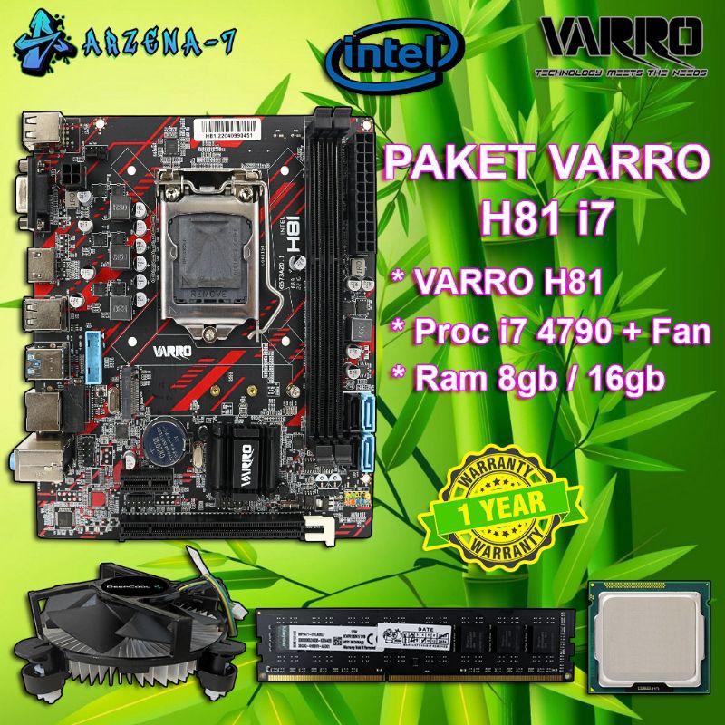 Paket Motherboard Varro H81 + Proc Core i7 4790 + Ram 8Gb / 16Gb