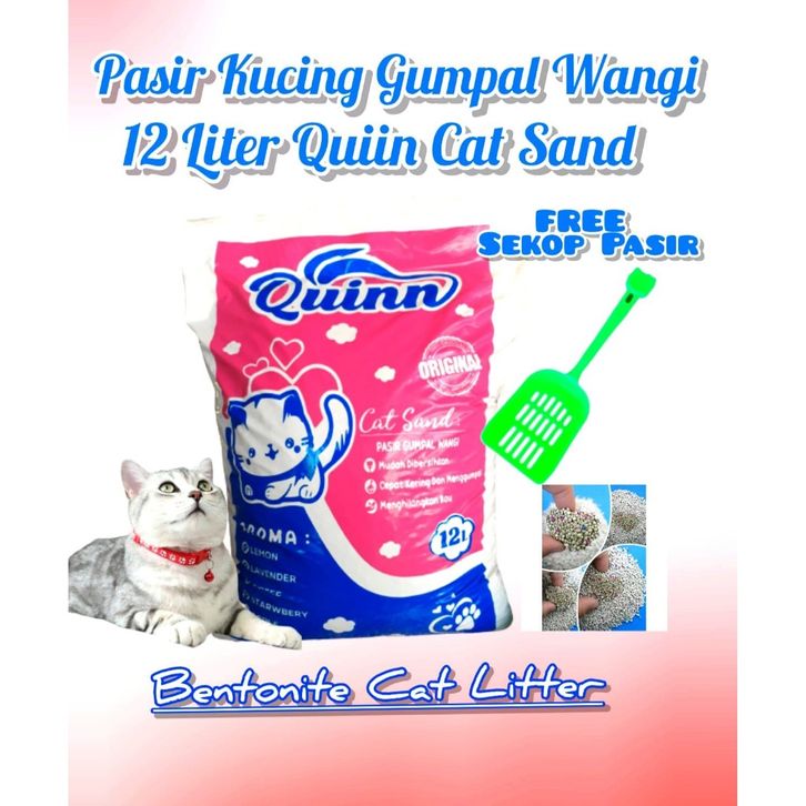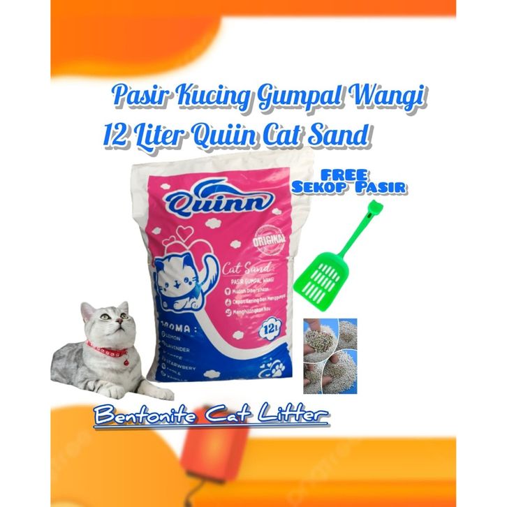 Kemasan 12 Liter-Pasir Kucing Gumpal Wangi QUIN Cat Sand Bonus Sekop-Cat Litter Box