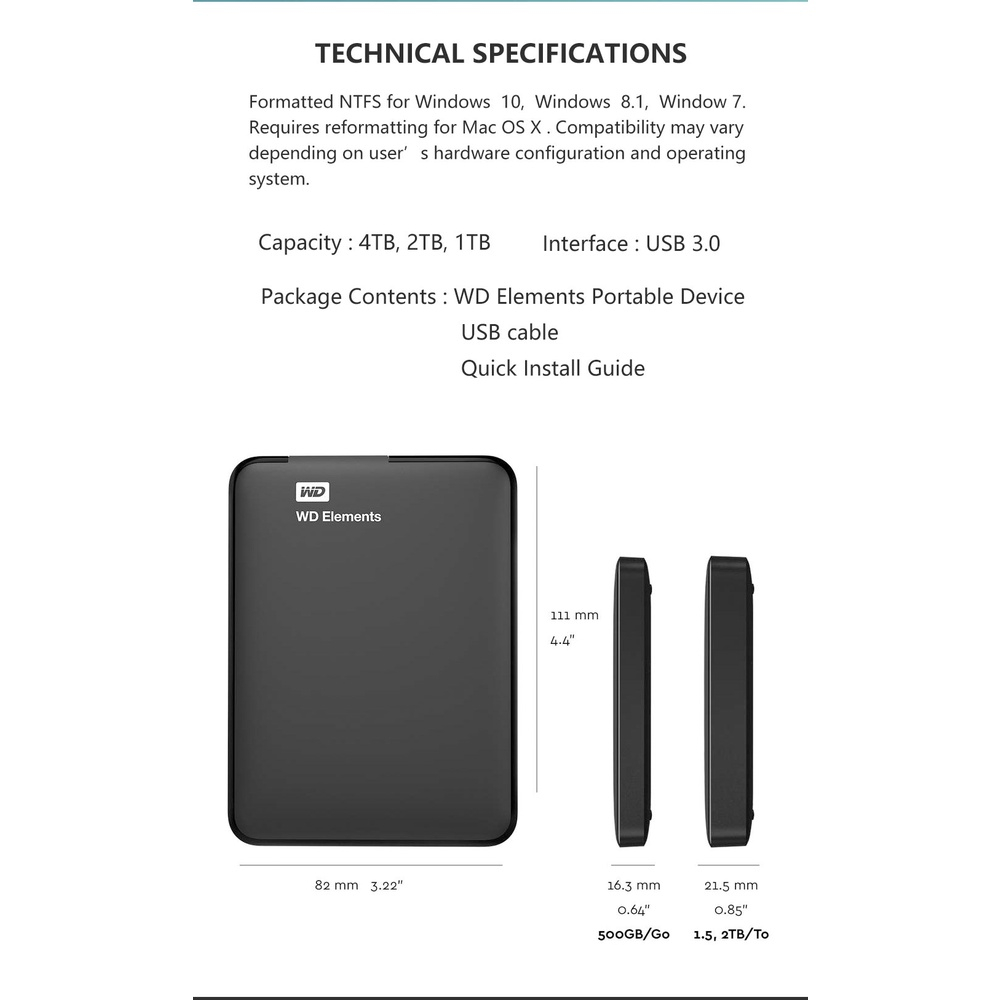 FREE POUCH WESTERN DIGITAL ELEMENTS 500GB/1TB/2TB/4TB HARDISK / HDD 2.5'' EXTERNAL USB 3.0 PORTABLE