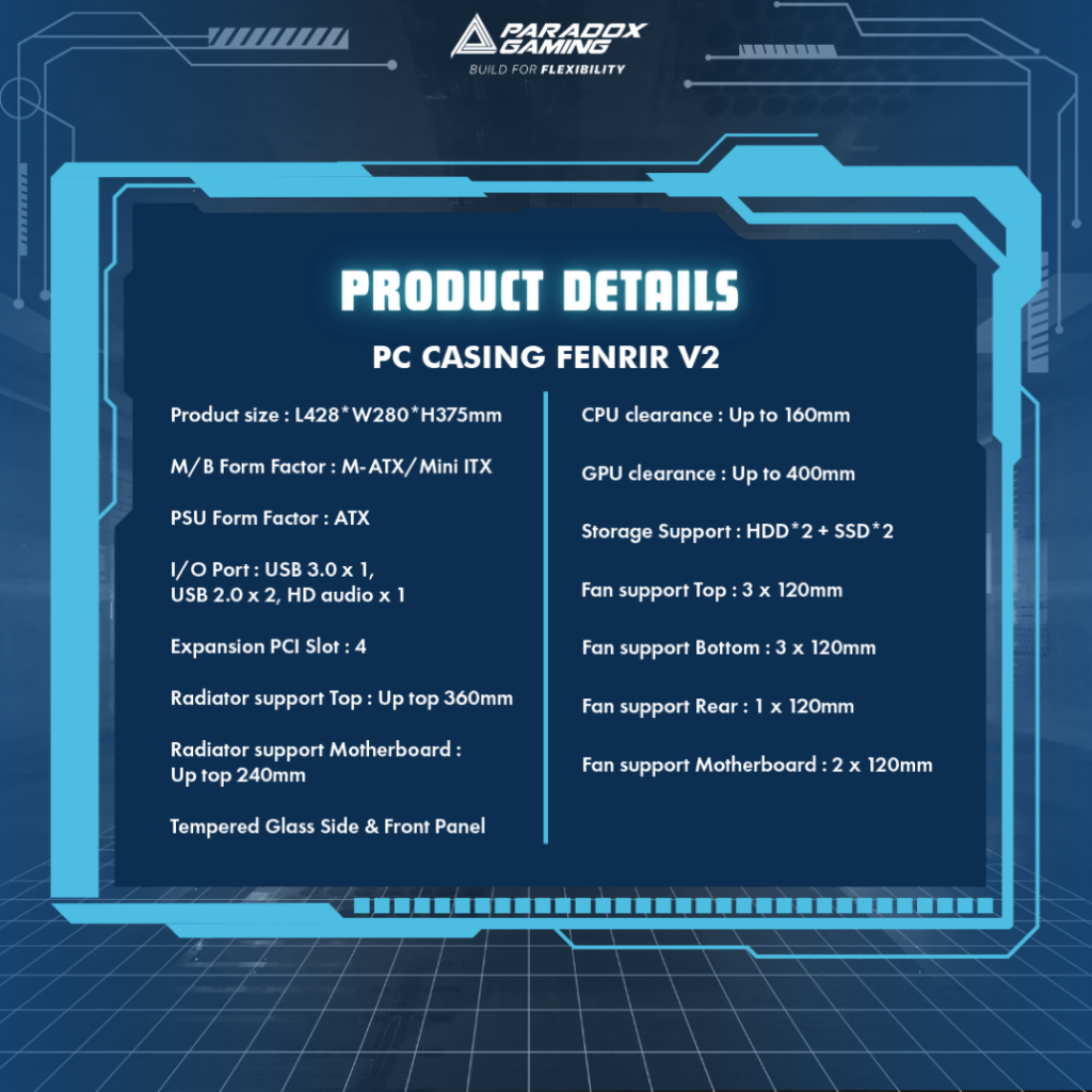 Paradox Gaming Fenrir V2 Black & White M-ATX PC Case CPU Casing Komputer