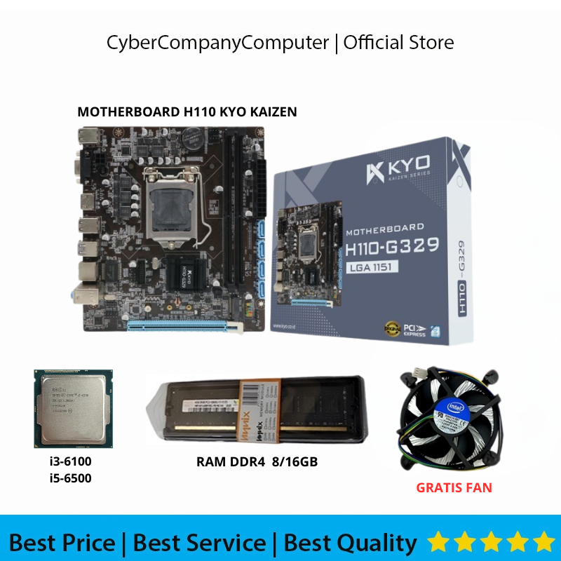 Paket Mainboard KYO KAIZEN H110 -Mobo H110 Socket LGA1151 INTEL DDR4 Support Nvme -Corei3-6100/i5-6500 -FreeFan