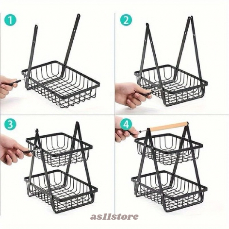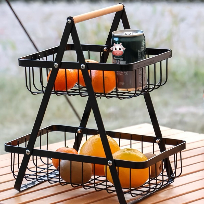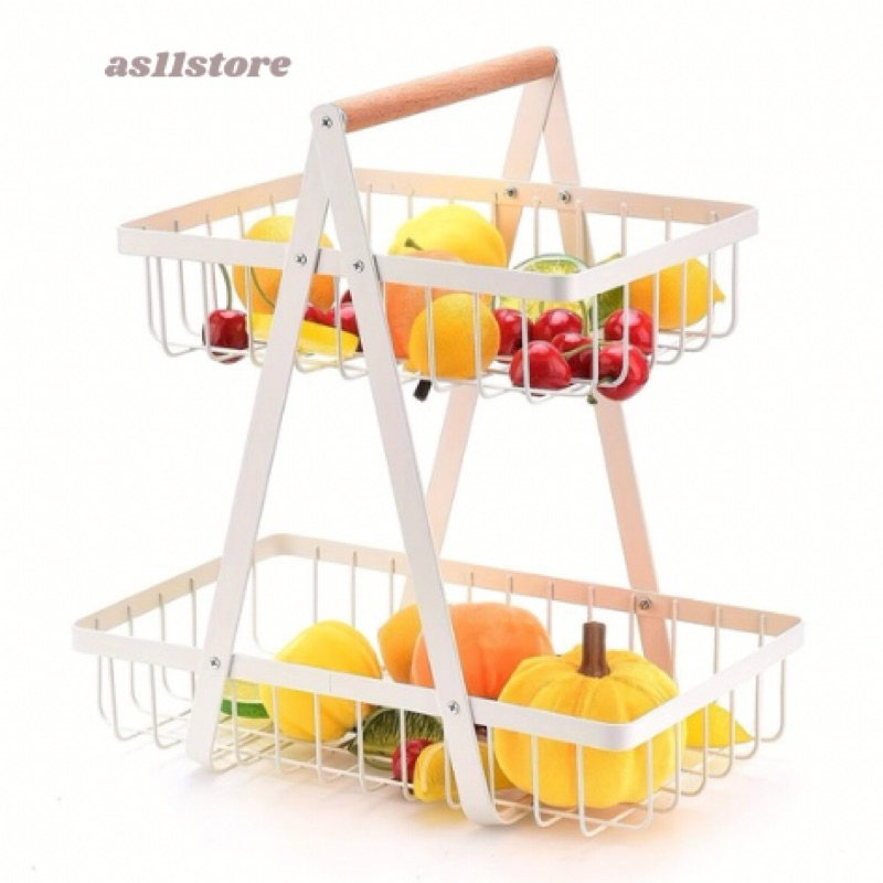 Keranjang Serbaguna 2 Tingkat Tempat Buah Rak Buah Besi Segitiga Rak Keranjang Bawah Buah Dan Sayur