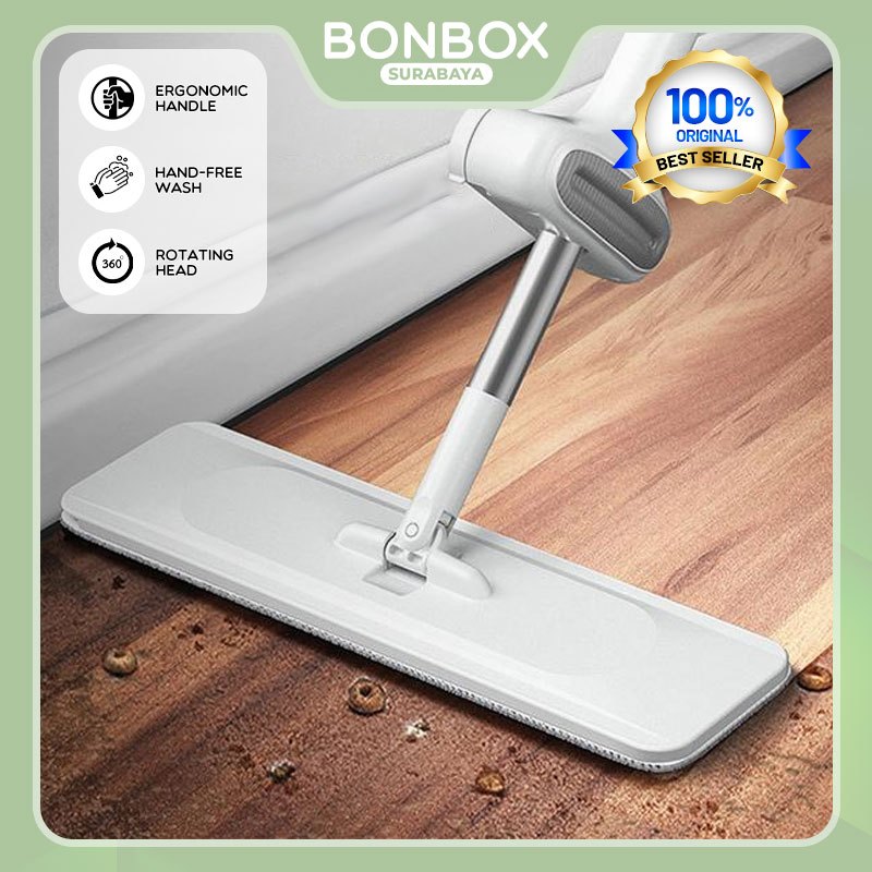 BONBOX Alat Pel Lantai Ultra Mop Hand-Free Wash Rotasi 360 Derajat Ergonomic Handle Murah BCT701 Putih
