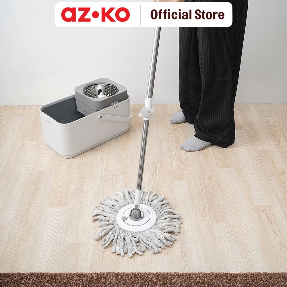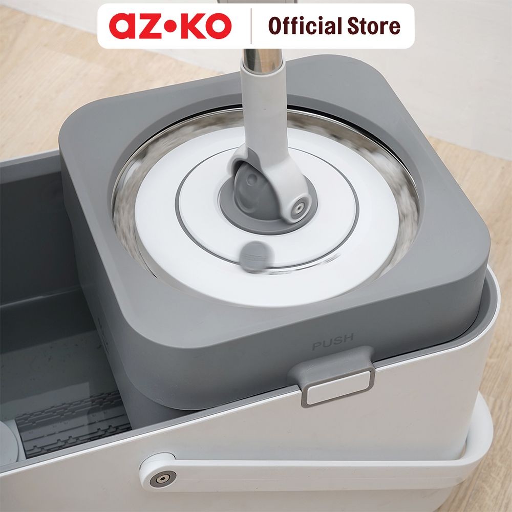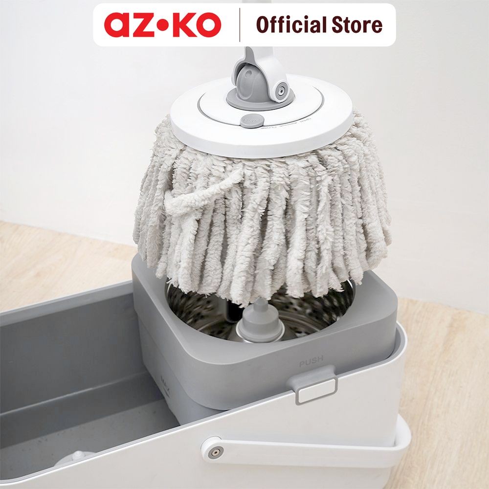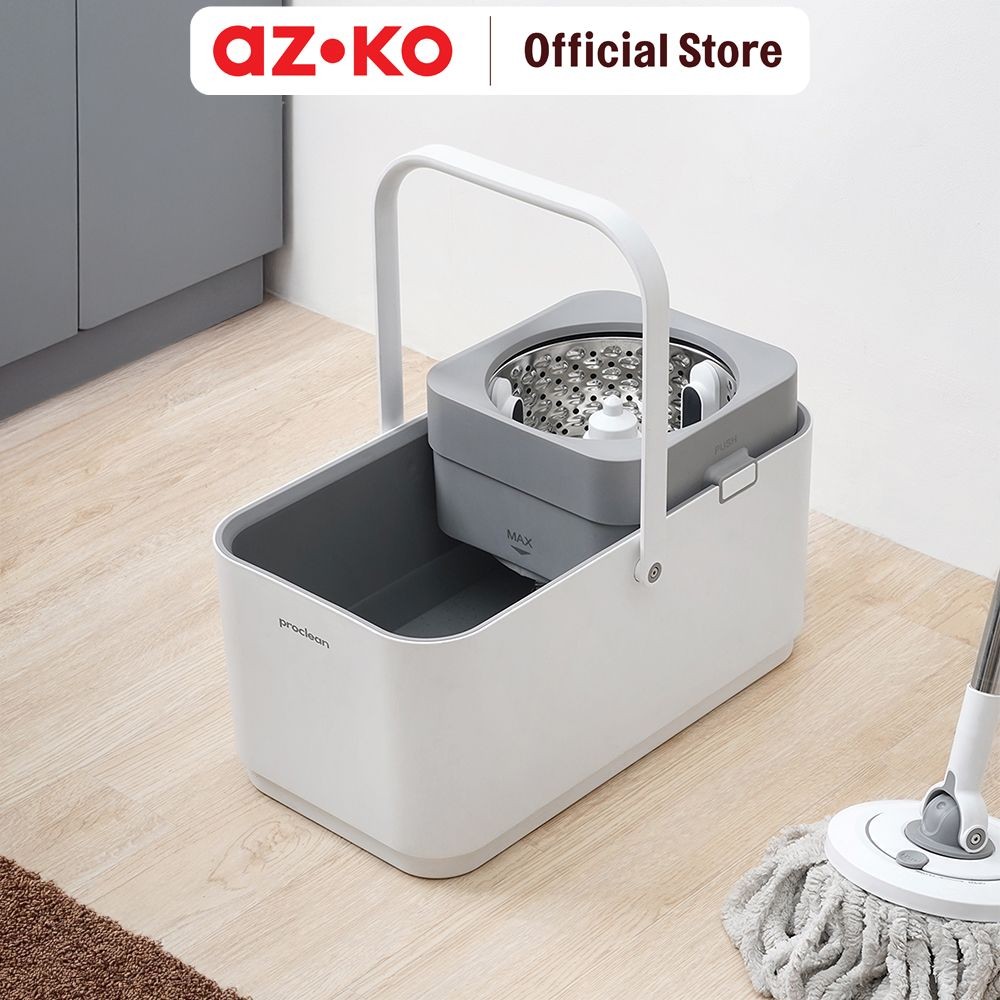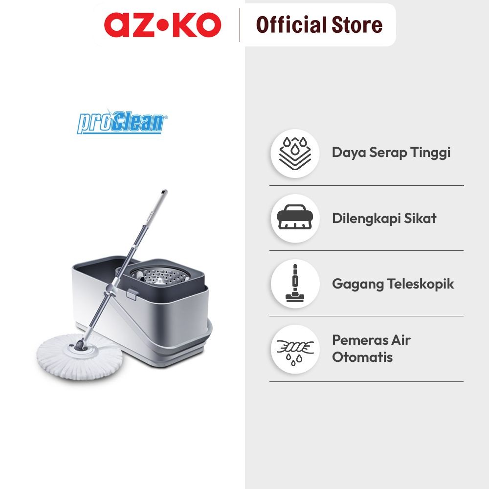 AZKO Proclean Set Alat Pel Putar Dengan Ember Peras & Brush - Abu-Abu Kain Pel Spinning Mop With Bucket Pembersih Lantai