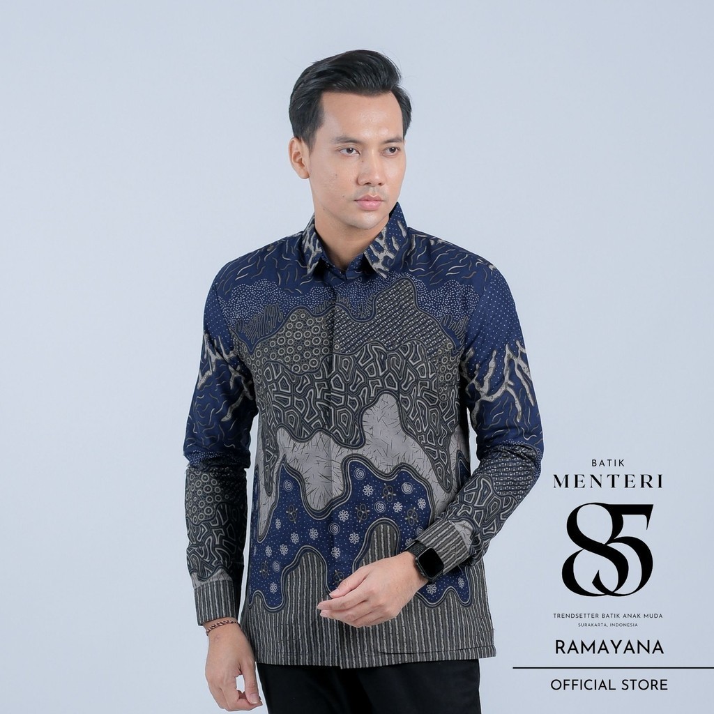 Kemeja Batik Menteri 85 Baju Batik Pria Motif Ramayana Modern Lengan Panjang Slim Fit Premium