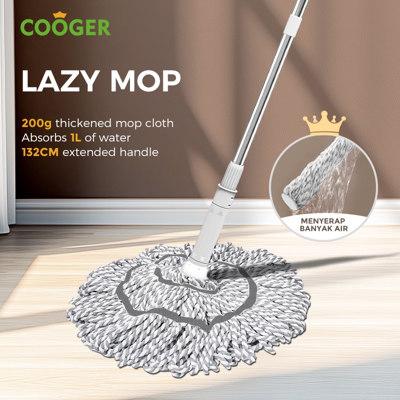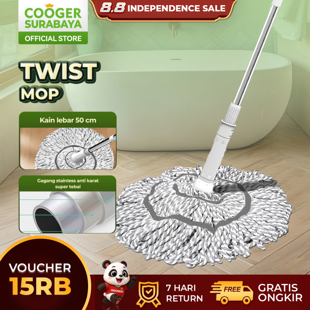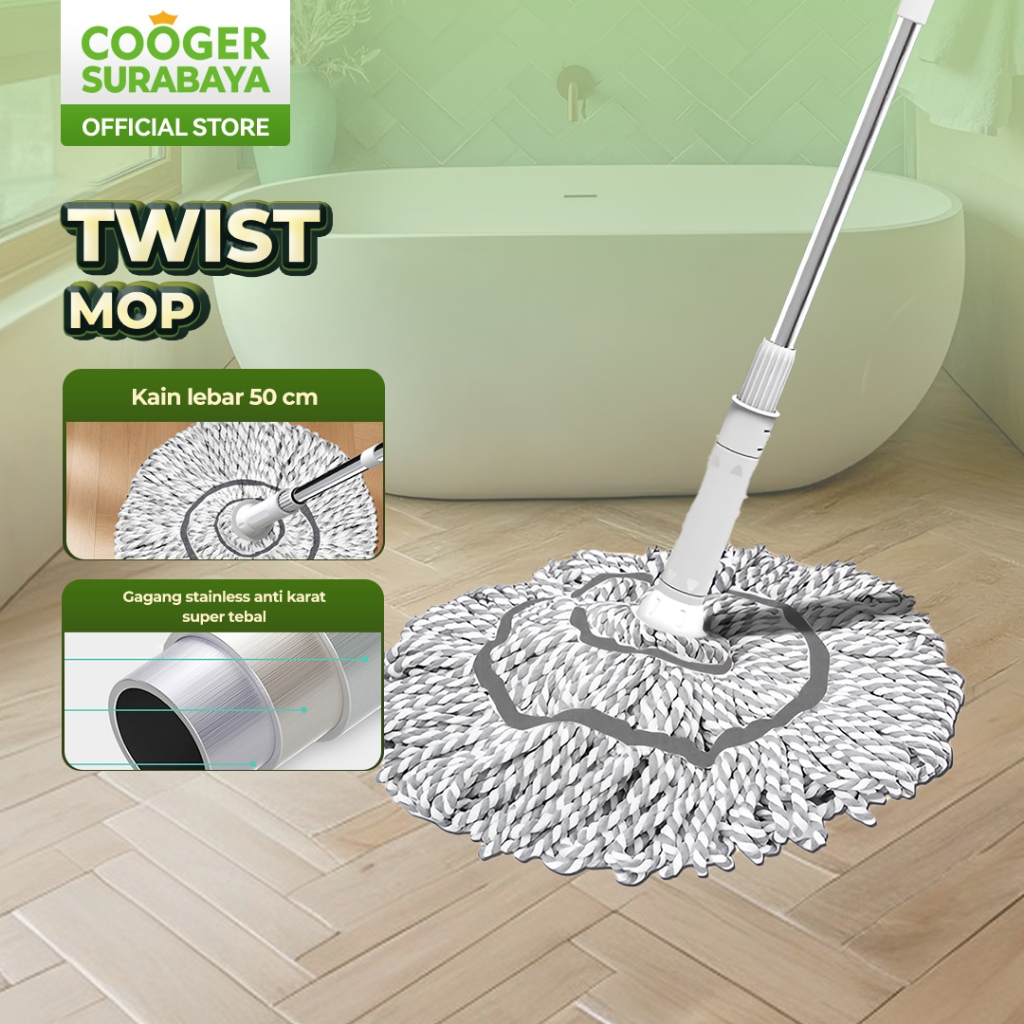 COOGER SURABAYA Pel Putar Peras Otomatis Twist Mop Alat Pel Lantai Basah Kering Gagang panjang Serbaguna