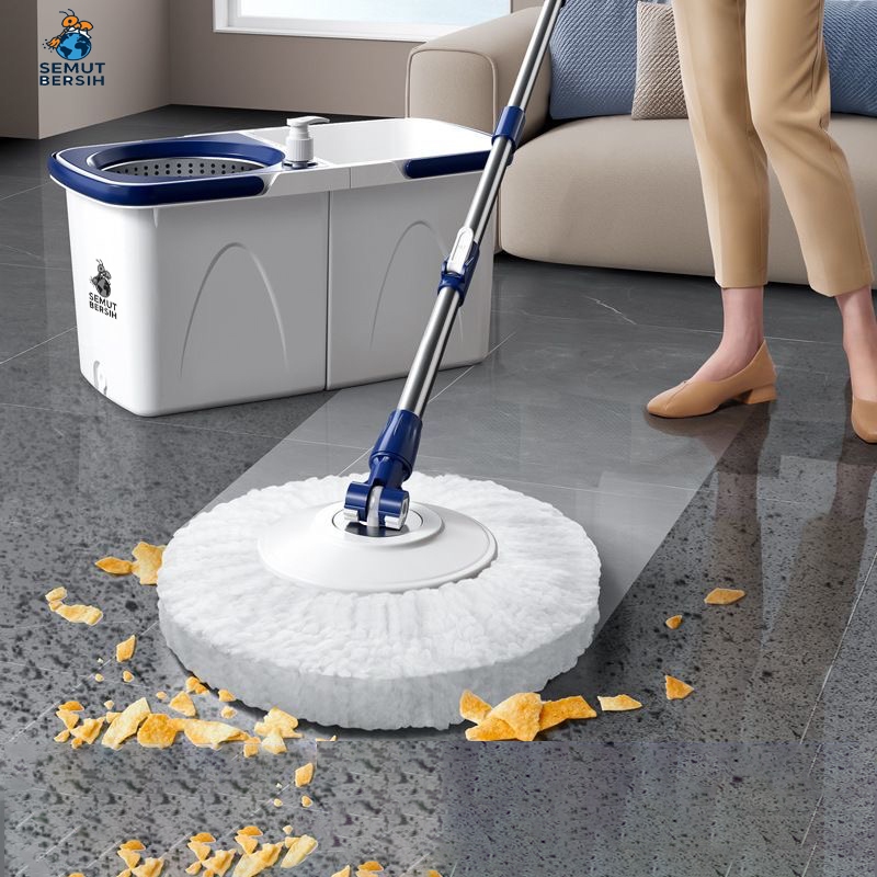 SEMUT BERSIH | Pel Lantai 2 in 1 | Spin Mop | Pel Lantai Putih 2 Sisi Terpisah Double Side | Mop Kain Mikrofiber