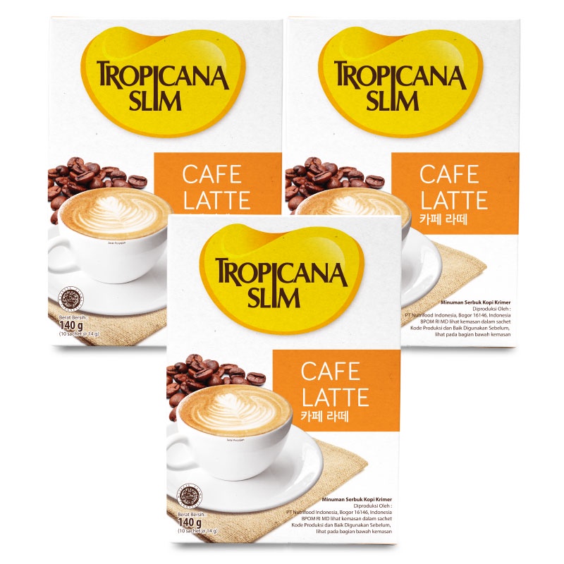 TRIPLE PACK - TROPICANA SLIM CAFE LATTE 10 SACHET 14 gr - KOPI SUSU NIKMAT TANPA GULA PASIR