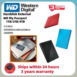 WD NEW MY PASSPORT 500GB 1TB 2TB 4TB - HDD / PORTABLE HARD DRIVE/ HARDISK / EXTERNAL HARDDISK 2.5" USB 3.2 - FREE POUCH
