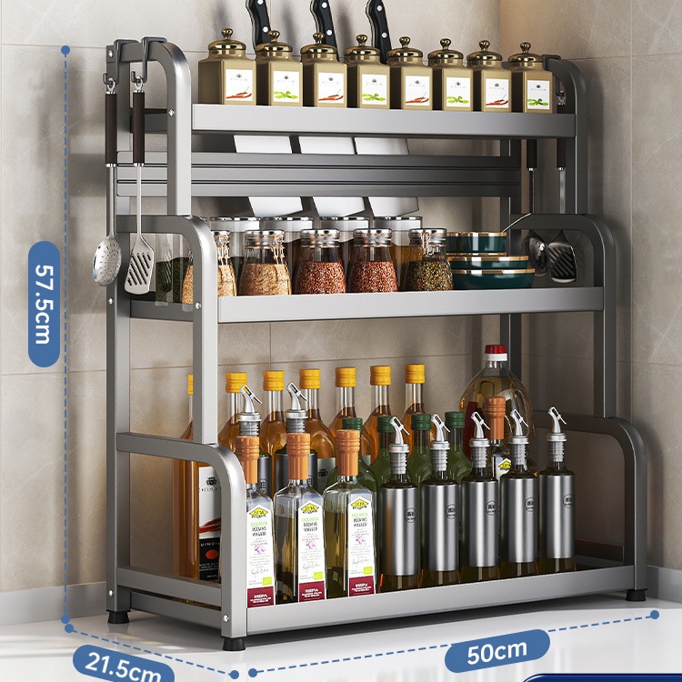 Rak Bumbu Dapur Susun Rak Dapur Tempat Bumbu Rak Penyimpanan Dapur Stainless Steel Rak Rempah Rak Penyimpanan ID20