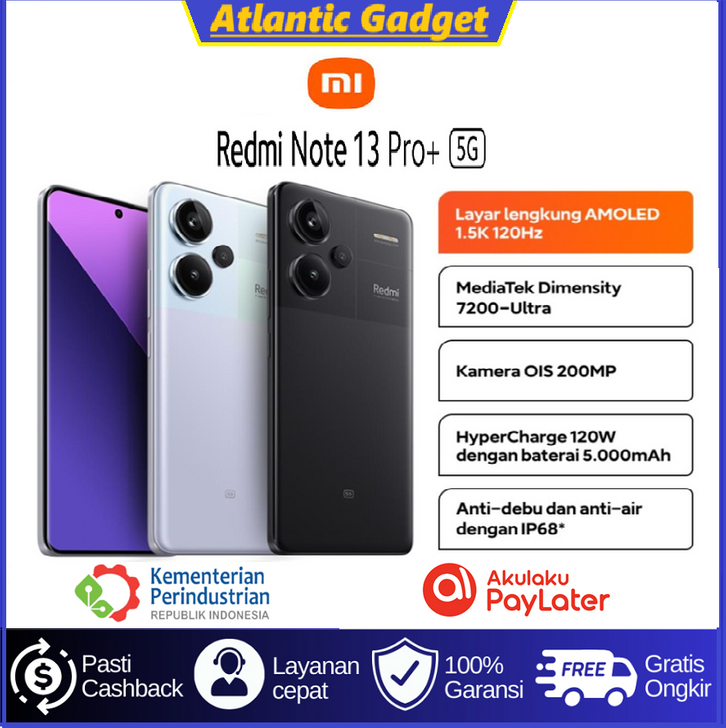 Hp Xiaomi Redmi Note 13 Pro+ 5G 12/512GB | MediaTek Dimensity 7200 Ultra | Layar 6.67" AMOLED 1,5k 120Hz | Kamera 200MP