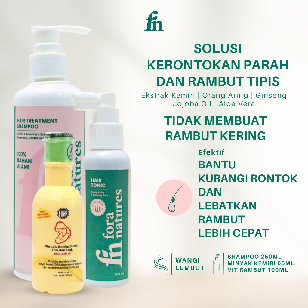 Fora Natures Bundle Shampoo Hair Tonic dan Minyak Kemiri