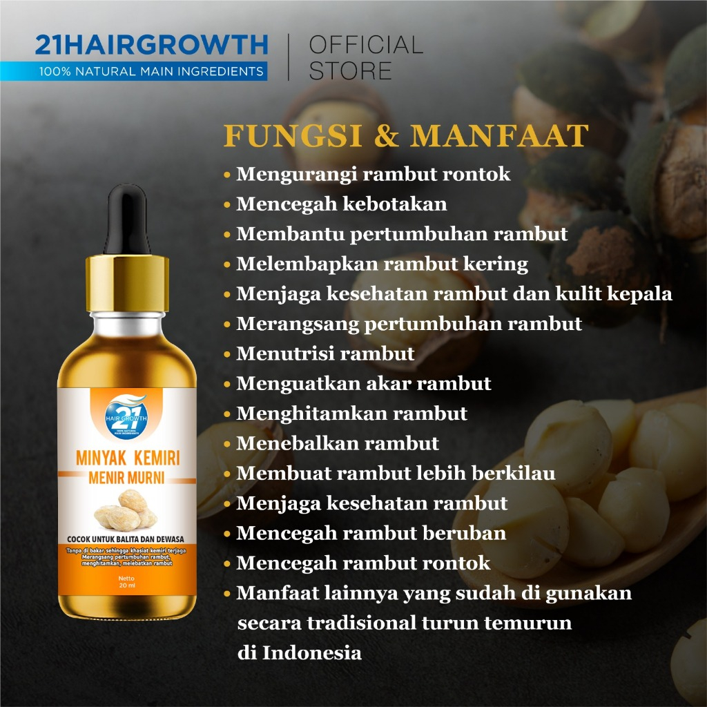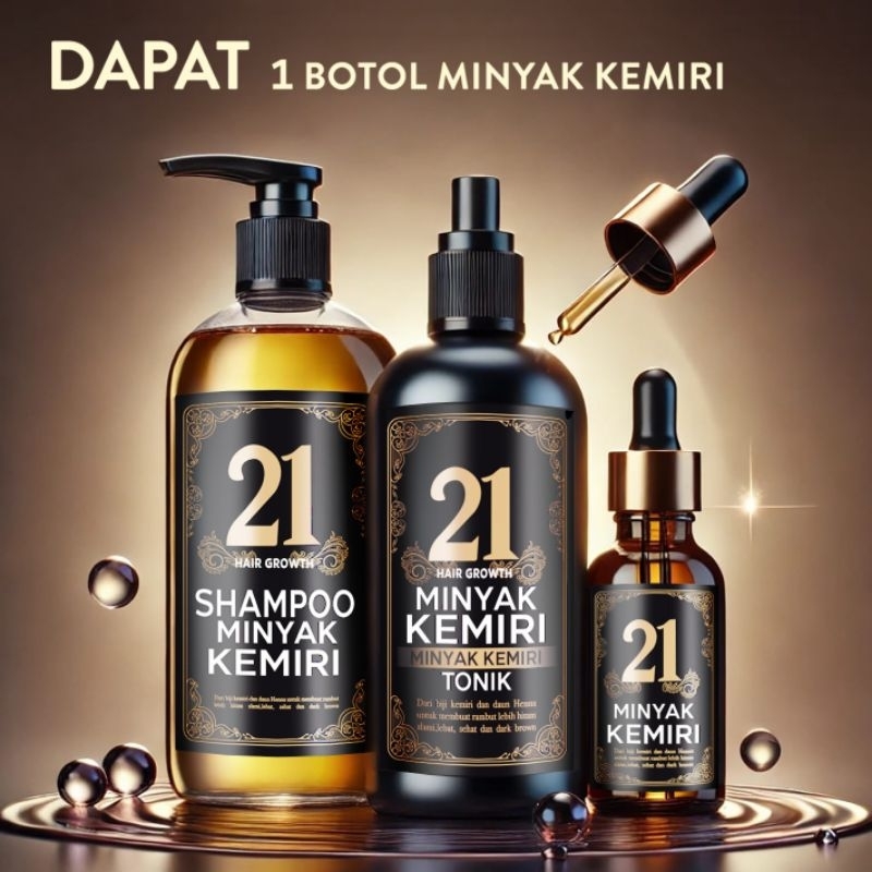 21 Hair Growth - Paket Bundling Minyak Kemiri - Minyak kemiri - Shampoo Minyak Kemiri- Tonik Minyak Kemiri - Shampoo Min