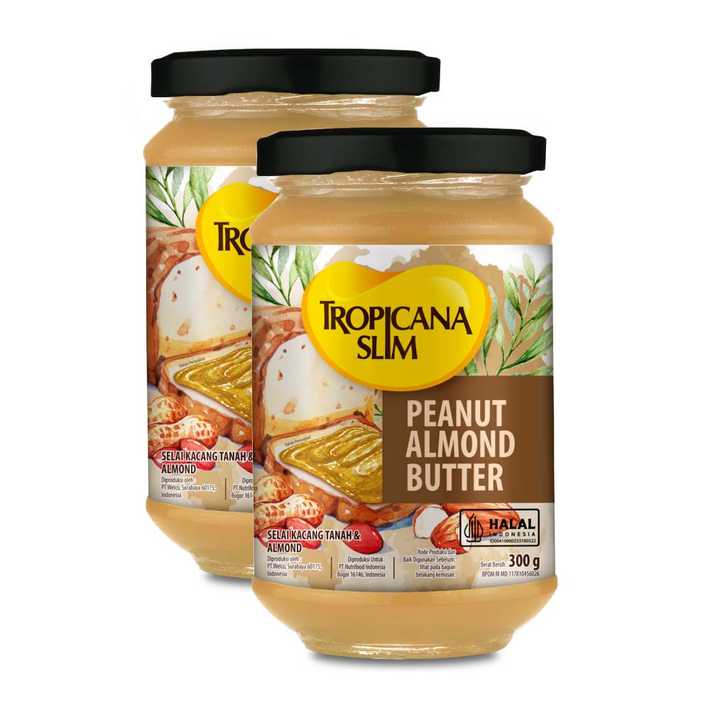 TROPICANA SLIM PEANUT ALMOND BUTTER SPREAD JAM 300 gr – SELAI KACANG ALMOND NIKMAT TANPA GULA PASIR