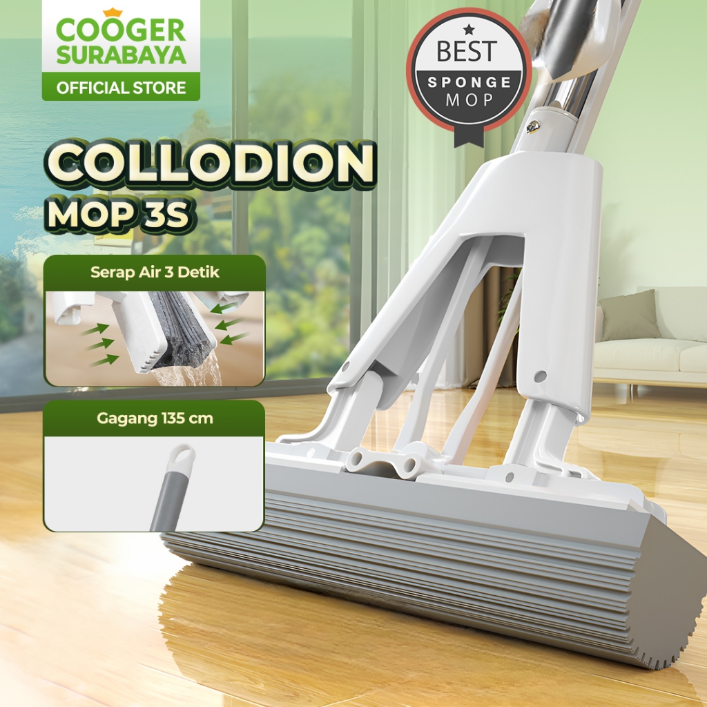 COOGER SURABAYA Alat Pel Spons Karet PVA Daya Serap Tinggi Dengan Gagang Baja Anti Karat Sponge Mop Gagang Panjang Peras