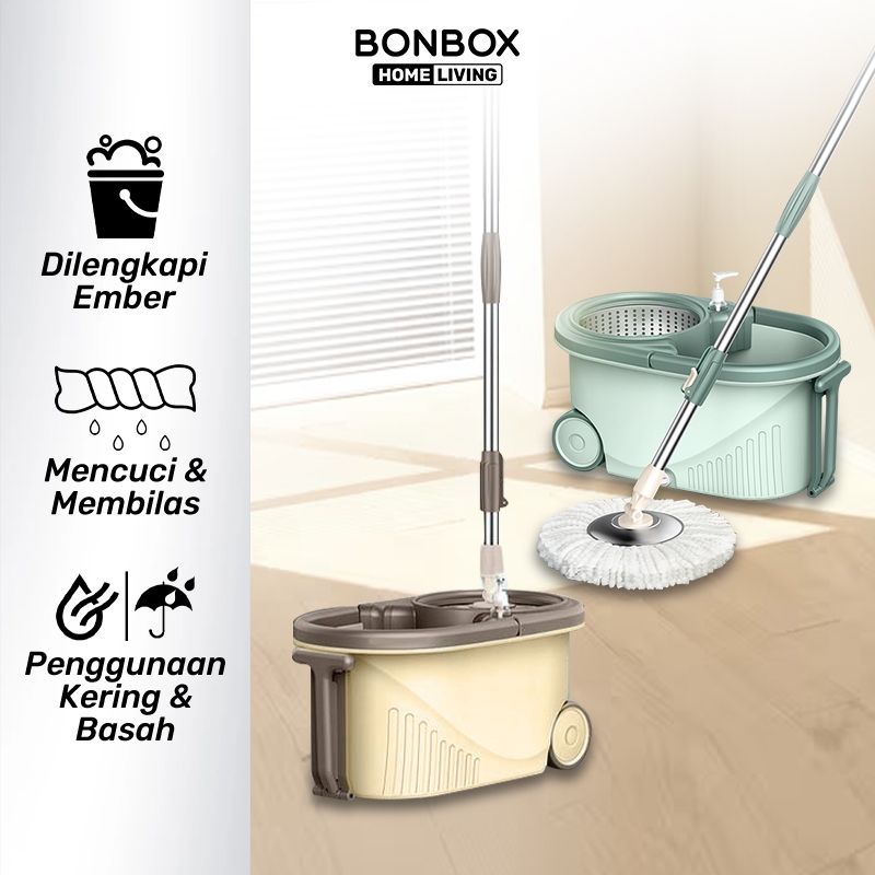 BONBOX Homeliving - Alat Pel Lantai 2 in 1 Ember Spin Mop Pemisah Air Bersih dan Kotor Kain Fiber Berkualitas Hemat Ruan